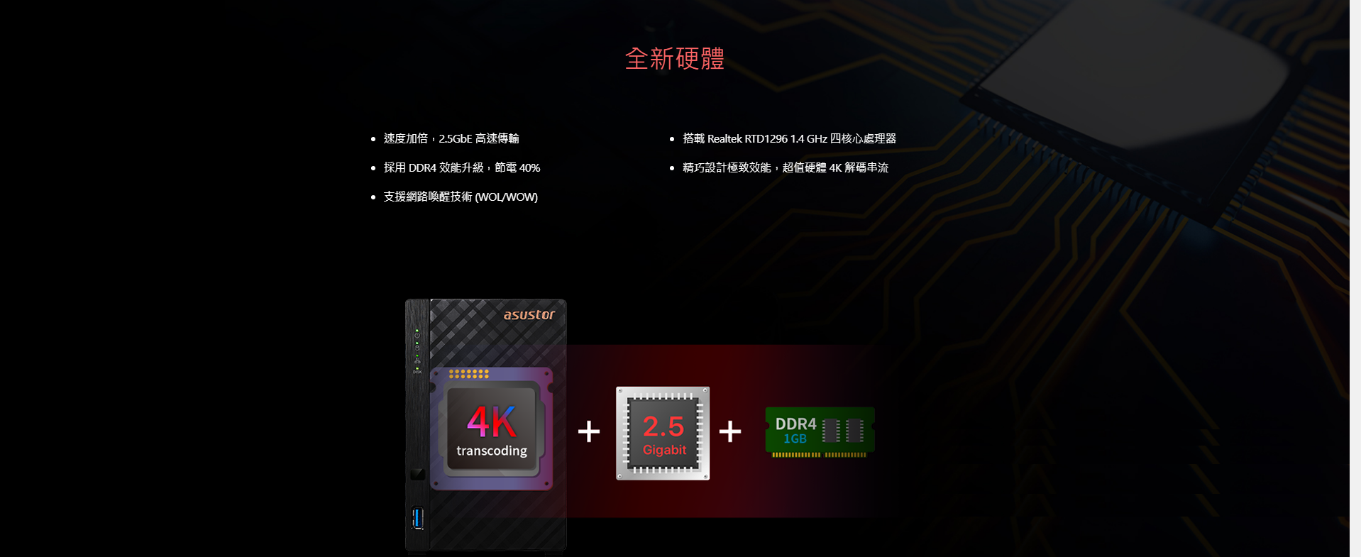 搭載 Realtek RTD1296 1.4 GHz 四核心處理器